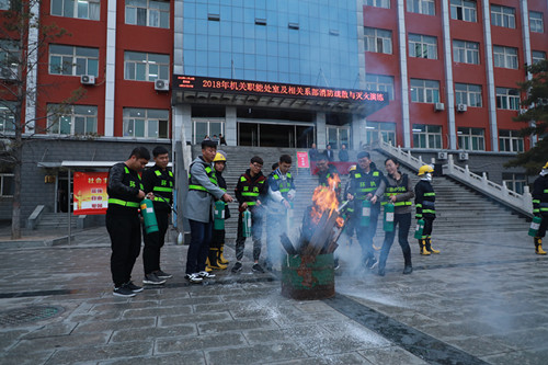 院长雷承锋担任演练总指挥,副书记李高斗担任副总指挥,下午16:30分雷院长宣布演练开始,随即消防演练警报拉响。整个消防疏散灭火演练过程历时30分钟,共分为:人员疏散、扑救起火点、救援现场被困人员、医疗救助讲解、消防战斗员实操演练、消防器材讲解以及各部门人员灭火器实际操作等七个环节,每个环节都做到快速、安全、有序,取得了演练预期效果。演练结束后保卫处处长张庆超进行了小结,他指出演练就是模拟发生突发火灾时的处置程序,大家严格按照演练方案要求完成了演练任务,通过此次演练进一步熟悉威尼斯官网在应对突发火灾时的处置程序,各部门人员要做到四懂、四会,进一步提高威尼斯官网安全能力建设。