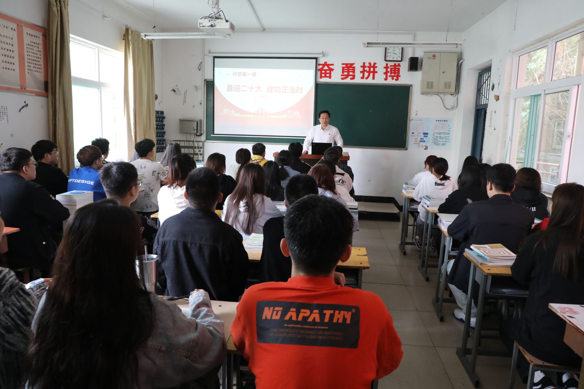开学第一课结合习近平总书记在省部级主要领导干部“学习习近平总书记重要讲话精神,迎接党的二十大”专题研讨班上的重要讲话精神,从把握“两个确立”做到绝对忠诚,把握”两个结合“坚定理想信念,把握”两个大局“坚持敢于斗争,把握”奋斗目标“强化责任担当四个方面进行阐述,要求青年学生进一步增强“四个意识”、坚定“四个自信”、做到“两个维护”,号召青年学生要立大志、明大德、成大才、担大任,要积极投身于新时代中国特色社会主义的伟大实践,不怕苦,不怕累,不畏艰难险阻,努力在新时代改革开放事业的奋斗中成为可堪大用、能担重任的栋梁之才。要坚定信心、埋头苦干,以优异成绩迎接党的二十大胜利召开。