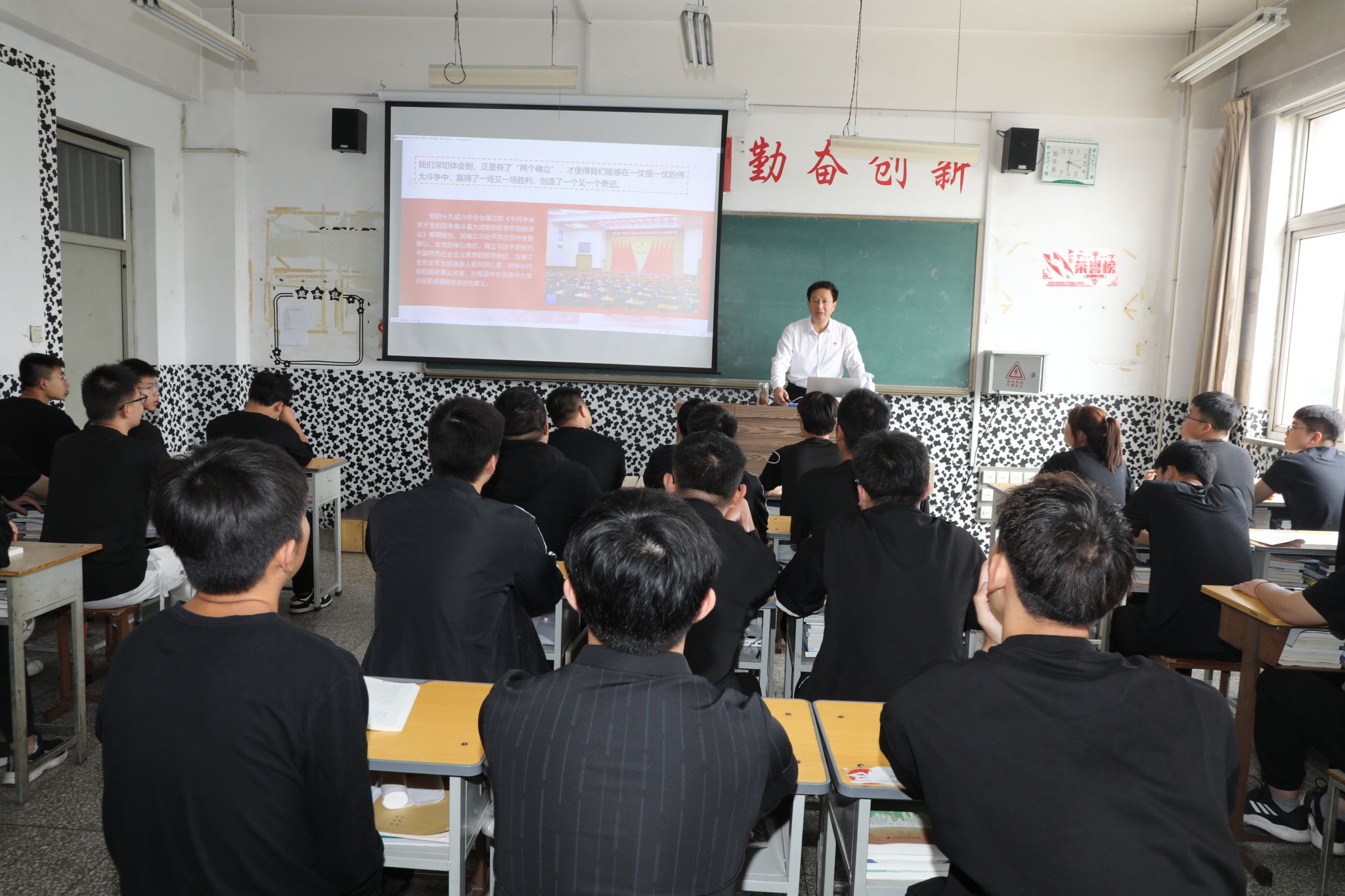 学院党委书记雷承锋同志率先在坞城和南中环两个校区开始第一讲,学院其他领导及全体思政教师在不同校区为全体学生讲授第一课。