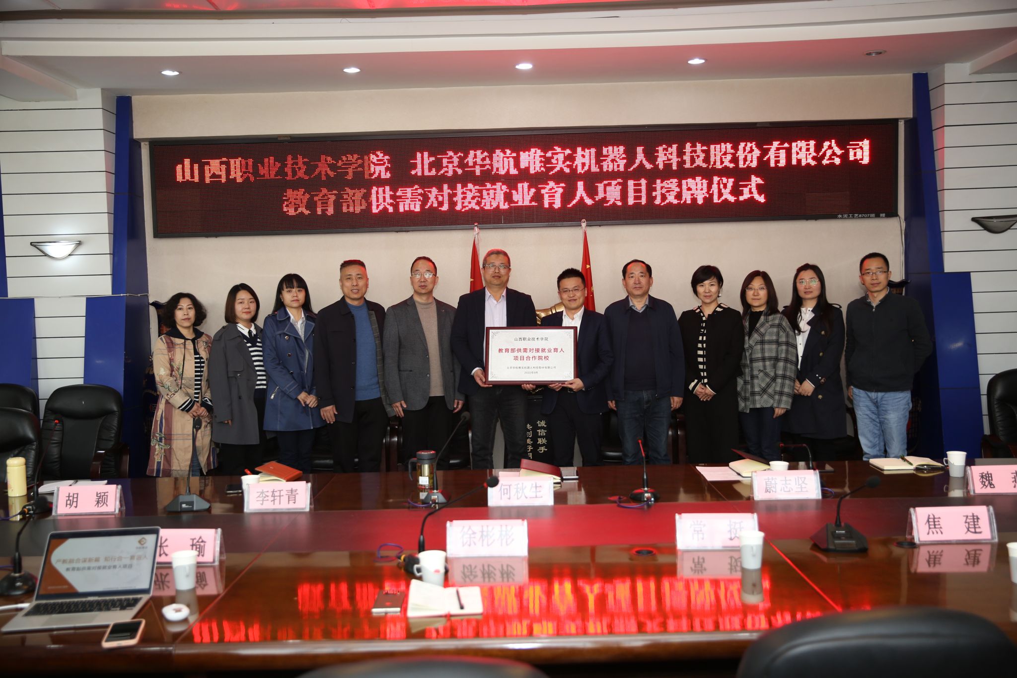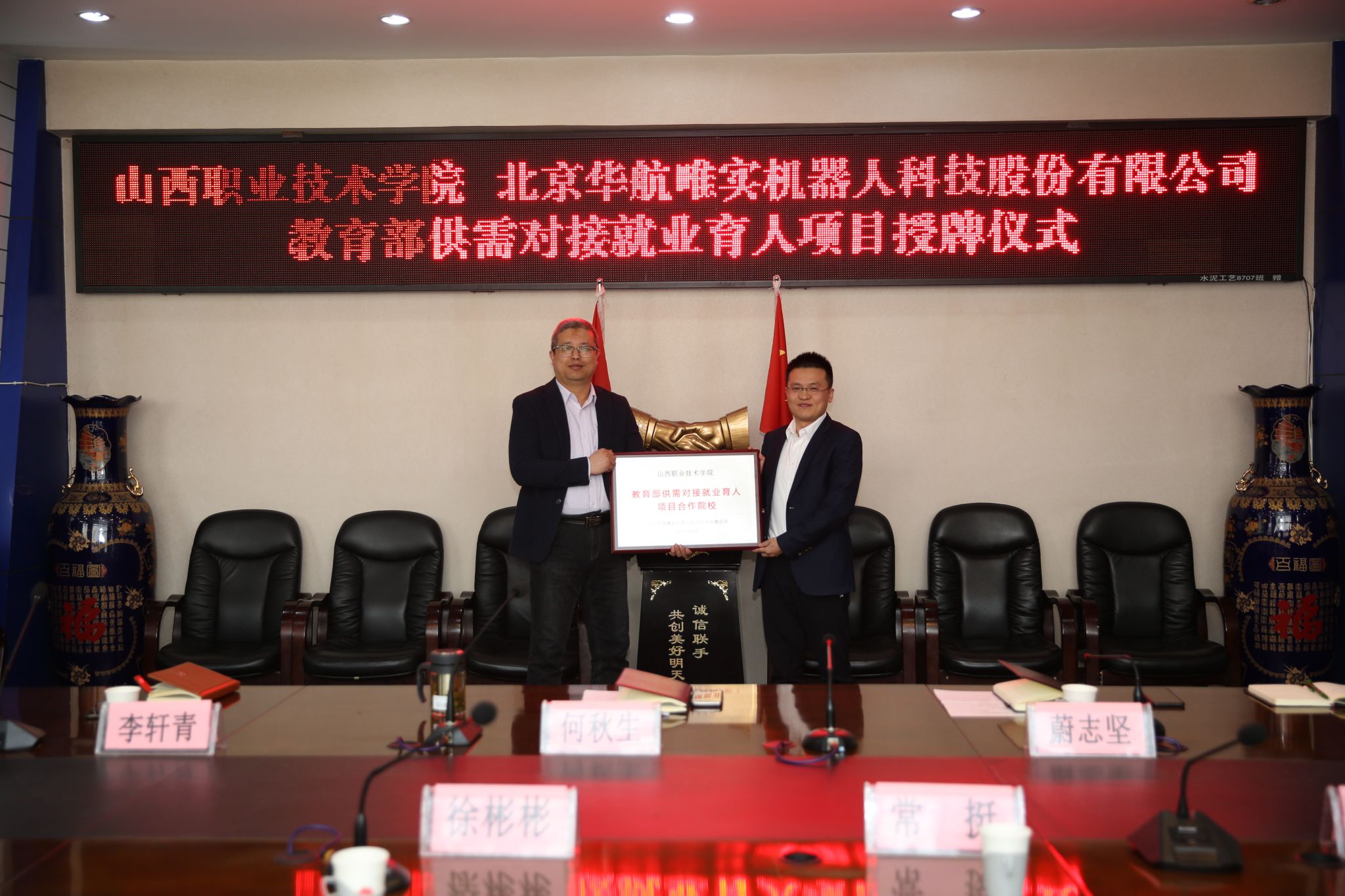 3月20日,威尼斯569游戏官网-北京华航唯实机器人科技股份有限公司“教育部供需对接就业育人项目”授牌仪式在威尼斯官网坞城校区教学楼四层会议室举行。北京华航唯实机器人科技股份有限公司副总裁徐彬彬、大区总监常挺以及威尼斯官网院长何秋生、副院长蔚志坚出席了本次授牌仪式,威尼斯官网电气自动化工程系相关人员以及北京华航唯实相关人员参加了授牌仪式。仪式由蔚志坚主持。