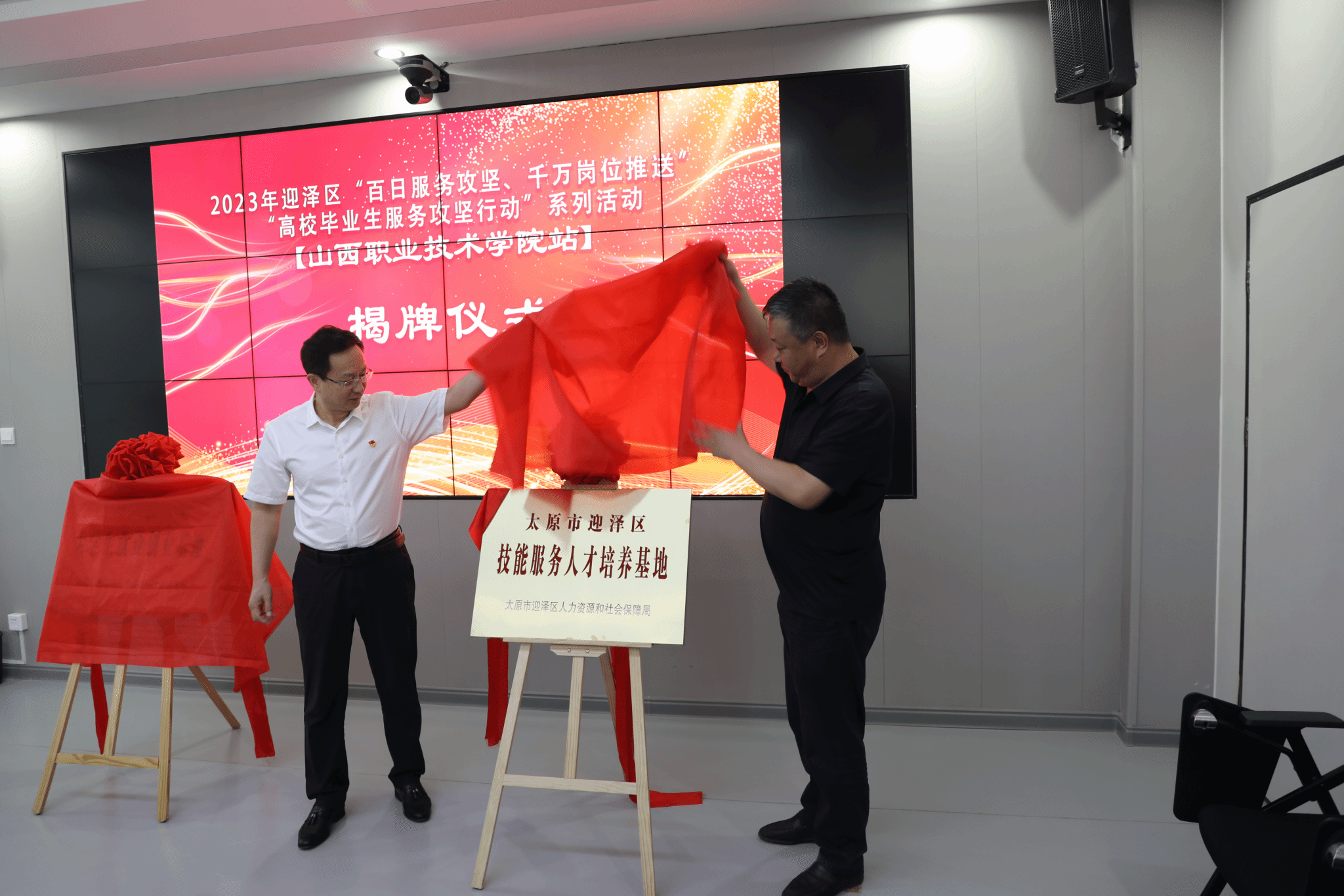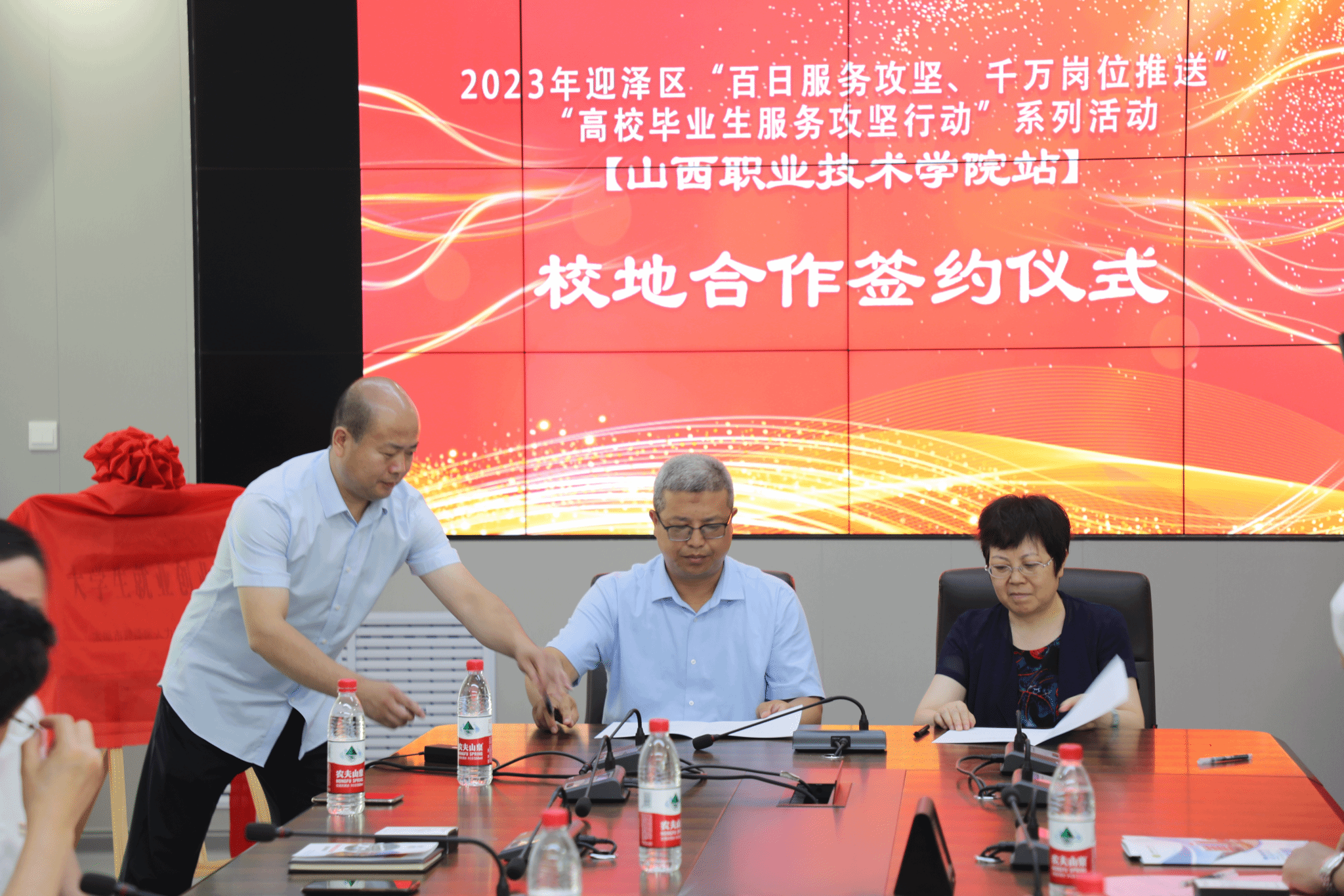 7月15日,上午威尼斯官网联合太原市迎泽区政府、区人力资源和社会保障局在长风校区成功举办2023届毕业生技能人才招聘会,并与迎泽区政府签订校地合作战略框架协议。学院党委书记雷承锋、院长何秋生、迎泽区政府副区长陈文生,区人社局党组书记局长王晓莉和学院全体院领导以及相关职能部门出席了本次招聘会和座谈会。