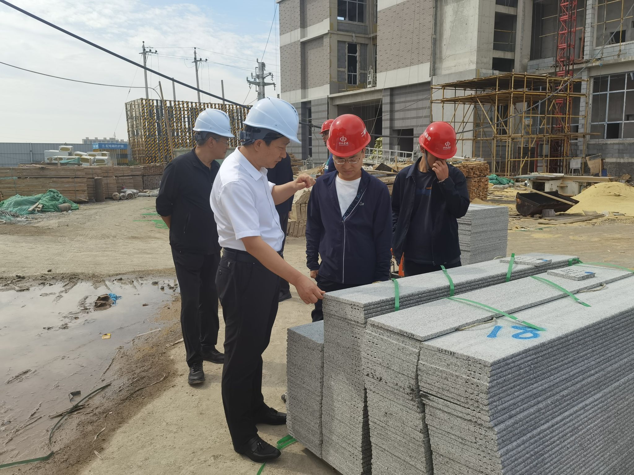 党委书记雷承锋视察了学院新校区产教融合实训楼建设施工现场,听取了承建单位项目部负责人对项目施工现状、预期完成目标等方面情况汇报,详细询问了坡屋顶挂瓦、屋顶平层防水、内墙地面装修、保温层及外立面喷涂、窗户玻璃安装等具体工程施工的进展情况、工地现场治理及安全生产措施的落实情况。每到一处,都仔细询问材料质量标准和选材把关流程,工程推进过程中存在的困难和问题等相关事宜。雷承锋鼓励施工人员鼓足干劲,保质保量加快施工进度;要求承建单位项目负责人和工程监理方要始终秉持建设高质量精品工程的理念,以细之又细的严谨作风紧盯施工各个环节、各项材料和施工工艺,时刻不放松地抓好工程质量;他强调要全面加强施工安全管理,遵守安全生产规章制度,认真落实安全生产责任制,切实做好施工安全防护及施工人员安全教育培训工作,提高安全意识,增强工作的责任感,确保安全生产“零事故”。