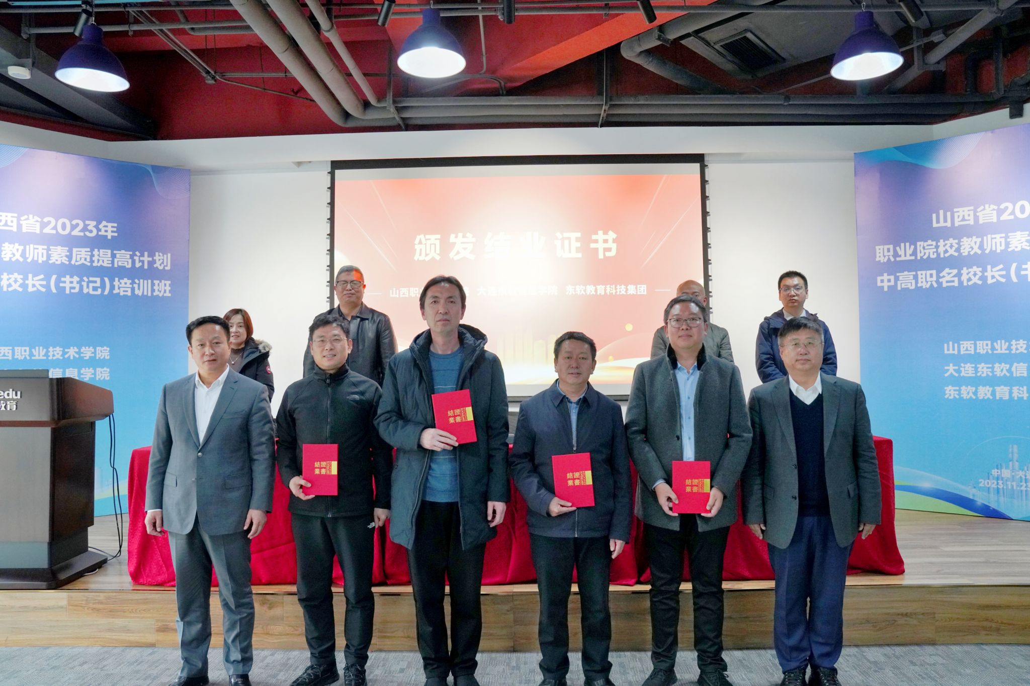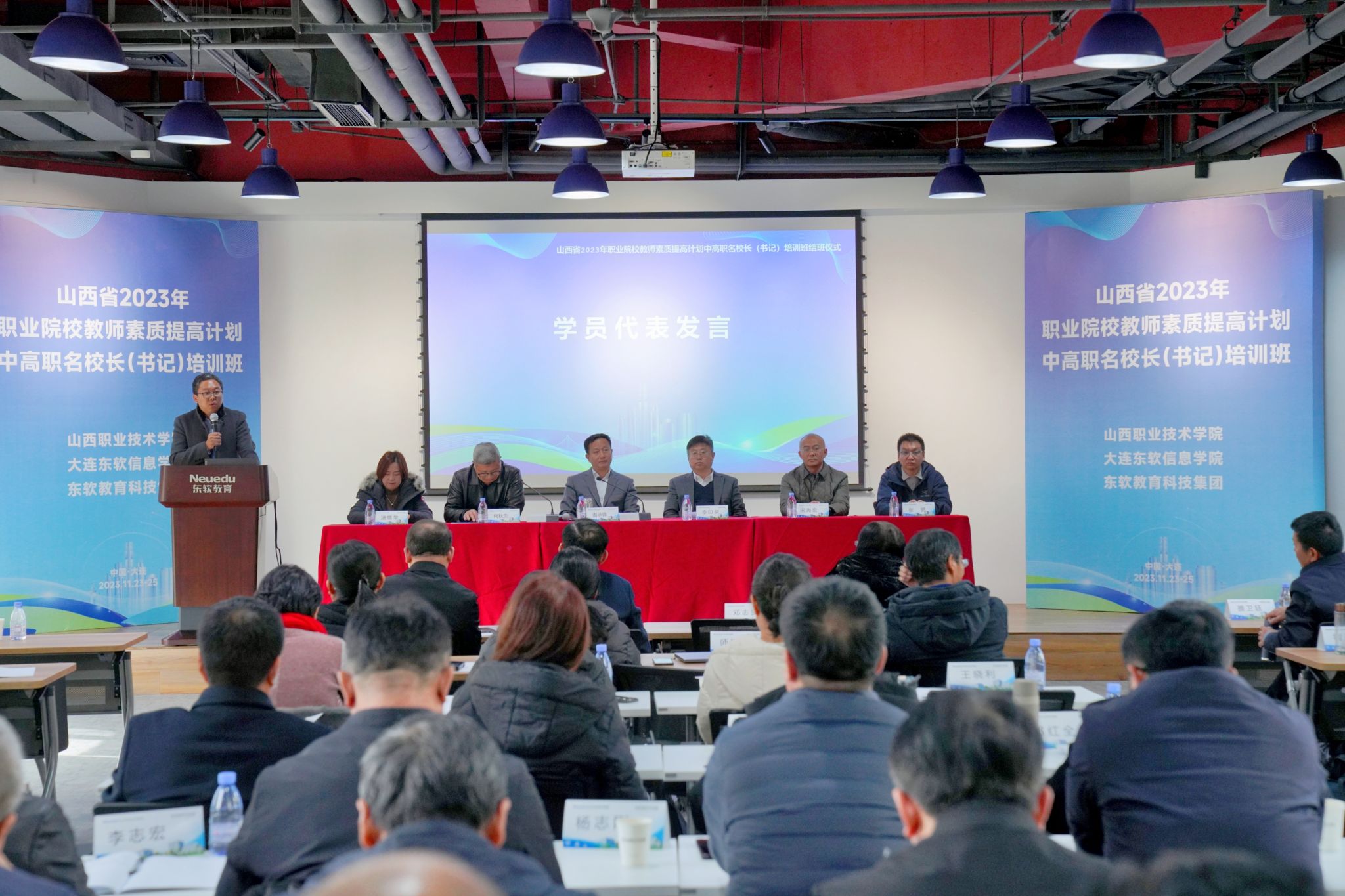 11月24日,威尼斯官网承办的山西省2023年职业院校教师素质提高计划名校长(书记)培训班在大连东软教育科技集团总部举行结班仪式。东软教育科技集团高级副总裁李印杲出席结班仪式并致辞,学院党委书记雷承锋出席结业式并讲话。东软教育科技集团学院相关部门负责同志以及来自山西省中高职院校的70余位校长(书记)参加结业式。结业式由学院党委副书记、院长何秋生主持结业式。