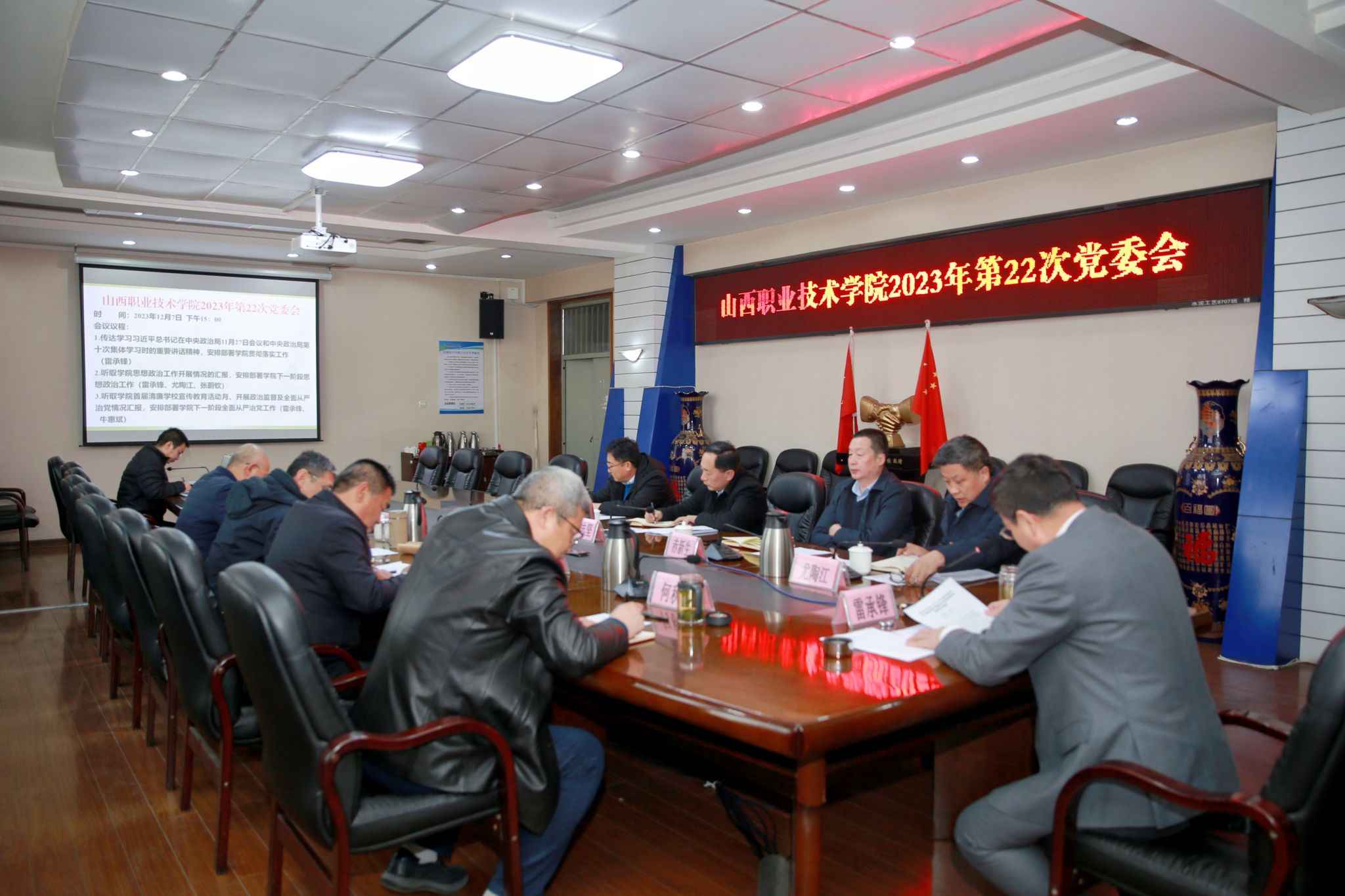 12月7日,学院党委书记雷承锋主持召开2023年第二十二次党委会议,会议传达学习习近平总书记在中央政治局11月27日会议和中央政治局第十次集体学习时的重要讲话精神,安排部署学院贯彻落实工作。全体党委委员参加会议,相关部门负责同志列席会议。