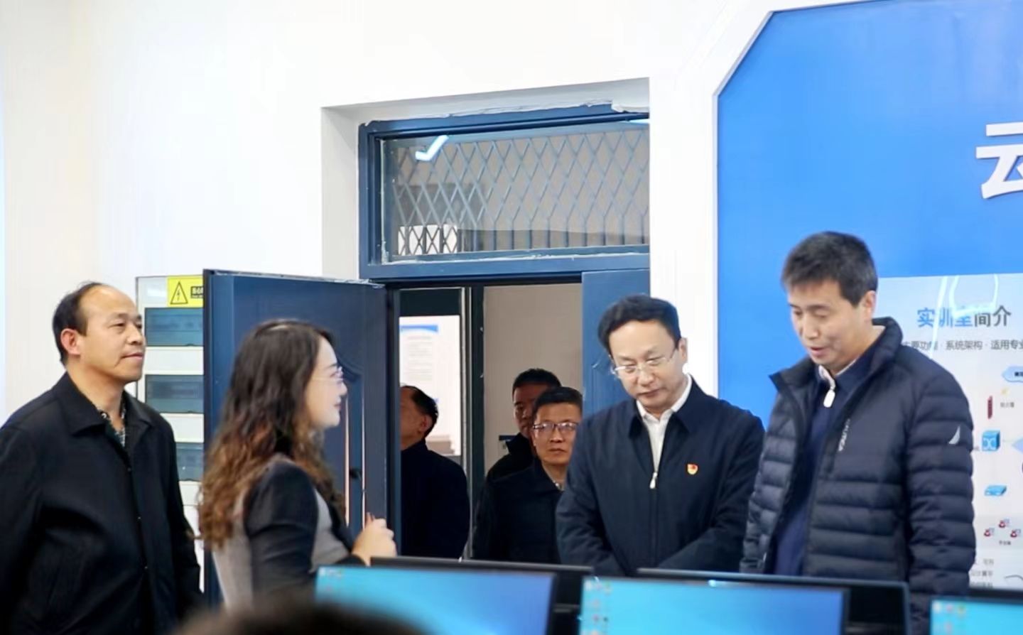 熊继军认真听取学院建设发展历程及新校区建设情况等,深入了解了“国家高水平专业群—大数据技术与应用专业群”建设情况,并走进全国样板党支部、博士工作站、众创空间、非遗文化传承工作室、科创中心、智能产品开发工坊等教育教学场所进行实地考察。调研中,熊继军查看了学生教学课堂,并与师生进行了亲切交流。