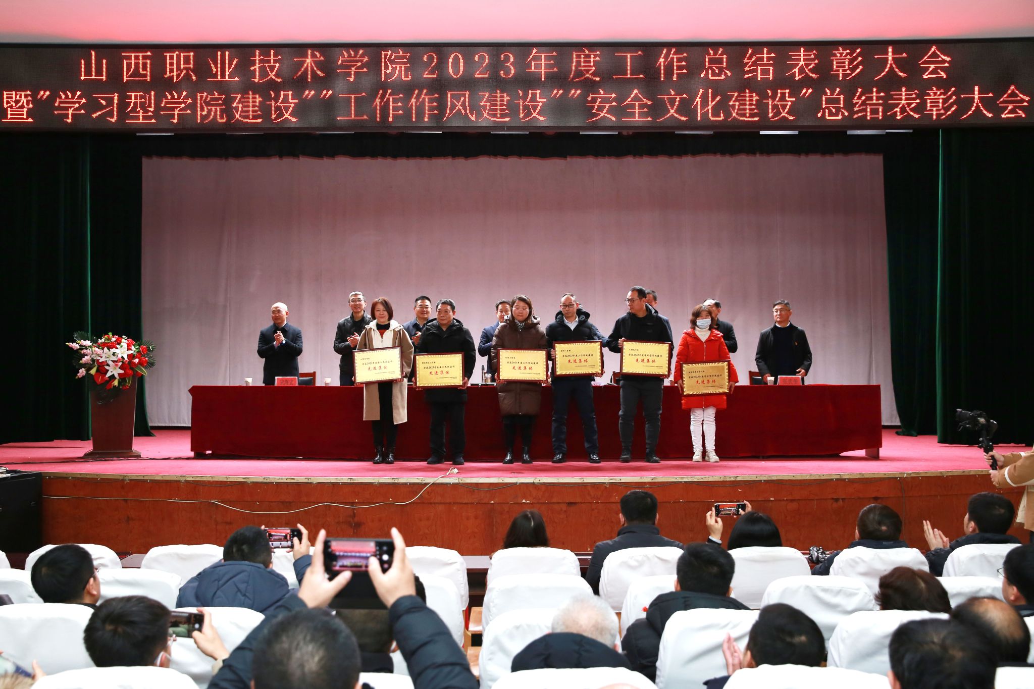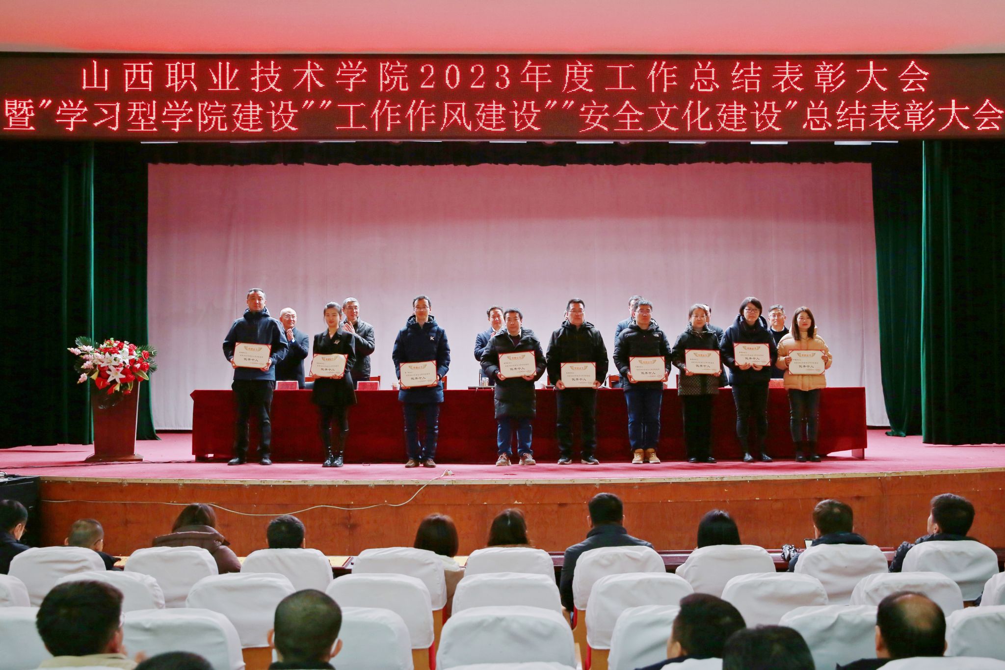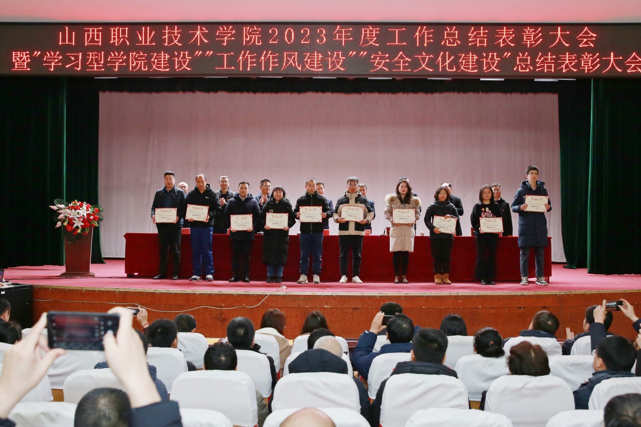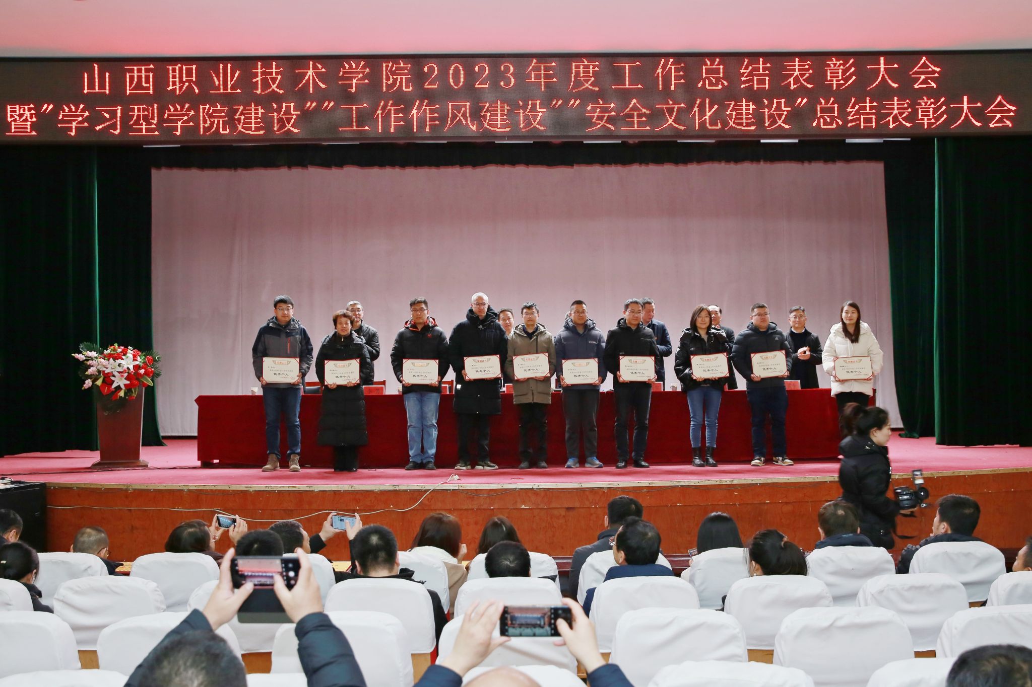 会上,学院党委委员、宣传统战部部长兼党政办主任宋海宏同志代表学习型学院建设和工作作风建设工作领导组办公室作2023年度工作总结报告;党委委员、副院长赤新生代表安全文化建设工作领导组办公室作2023年度工作总结报告。党委委员、纪委书记牛惠斌宣读学院2023年度学习型学院建设、工作作风建设、安全文化建设的表彰决定,会议对先进集体及先进个人进行颁奖。产教融合与对外交流发展中心李鹏飞老师代表先进个人进行发言。