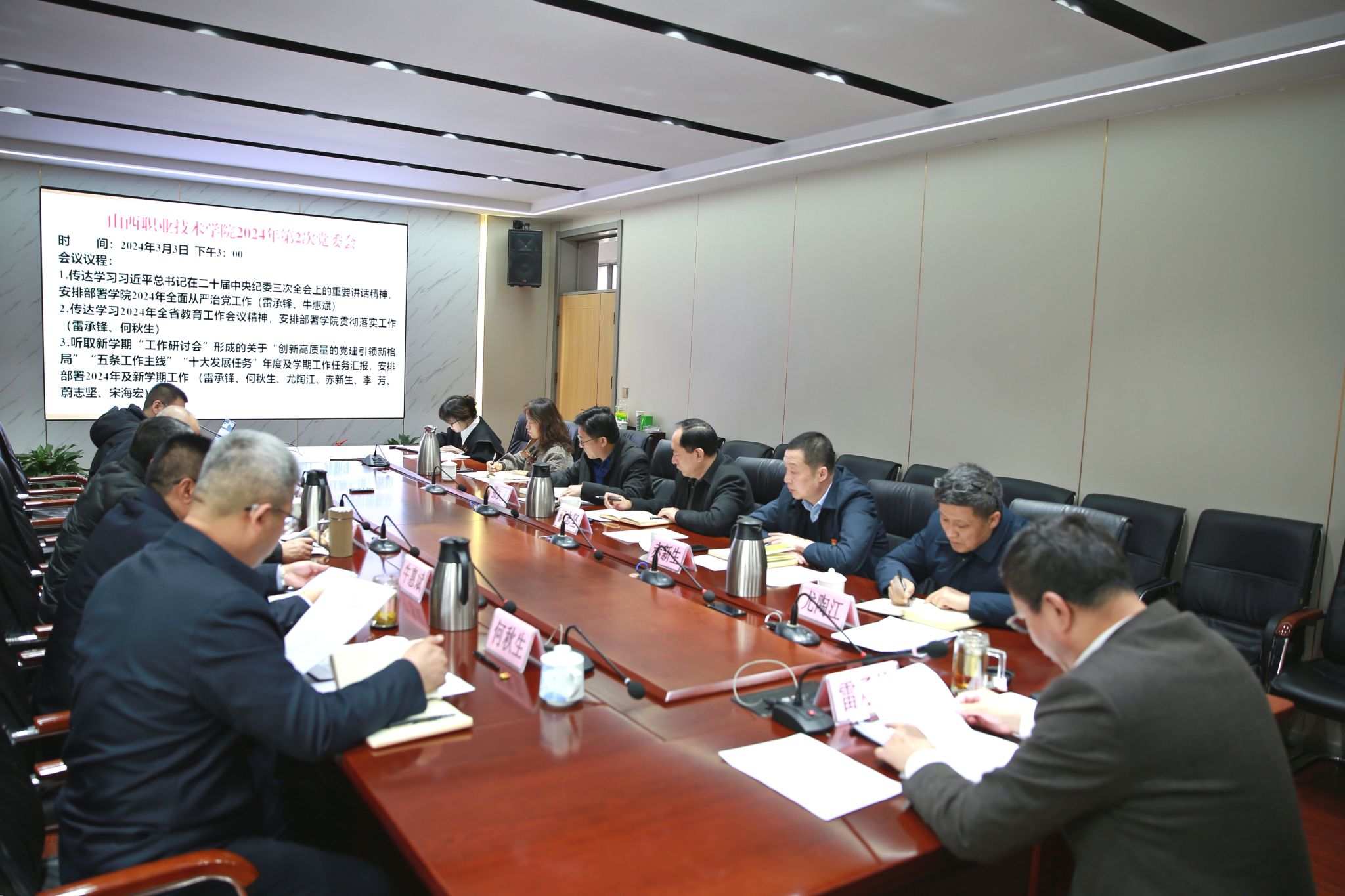 会议传达学习2024年全省教育工作会议精神。会议强调,全院上下要认真贯彻落实全省教育工作会议精神,立足国家战略和我省经济社会发展需求,紧跟职业教育发展新趋势,挺膺担当、砥砺奋进,始终以只争朝夕的精神状态和一往无前的奋斗姿态,奋力推进建设“特色鲜明、全国一流”的高水平职业院校进而迈向本科层次综合性职业技术大学再上新台阶,为推动教育强国、教育强省建设输出“山西职院模式”、贡献“山职力量”。