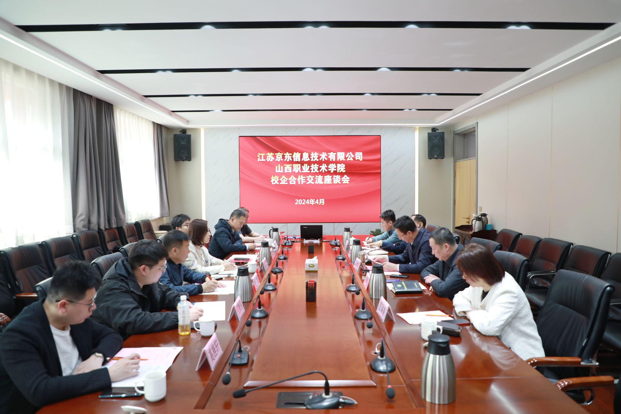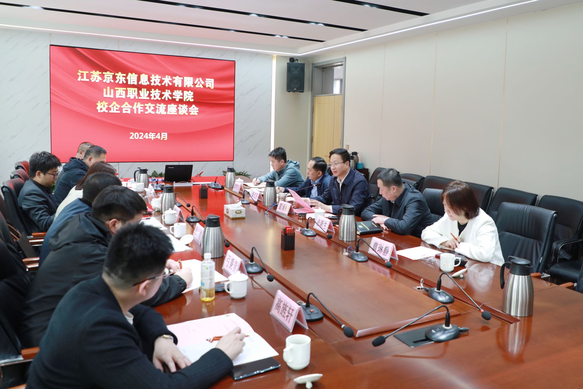 交流会上,雷承锋对京东集团金星星一行的到来表示了热烈的欢迎。会上,雷承锋从学院发展历程以及建设发展情况、新时期学院总体建设发展思路、学院新校区建设情况等三个方面向企业进行了介绍。他强调,产业学院作为一种新型产教深度融合的教育组织形态,是职业院校和企业实现有机融合的主要载体,希望京东集团能够发挥自身优势,积极投身到山西职院的产业学院建设进程中,共建智慧物流产业学院,助推学院校企合作再上新台阶。