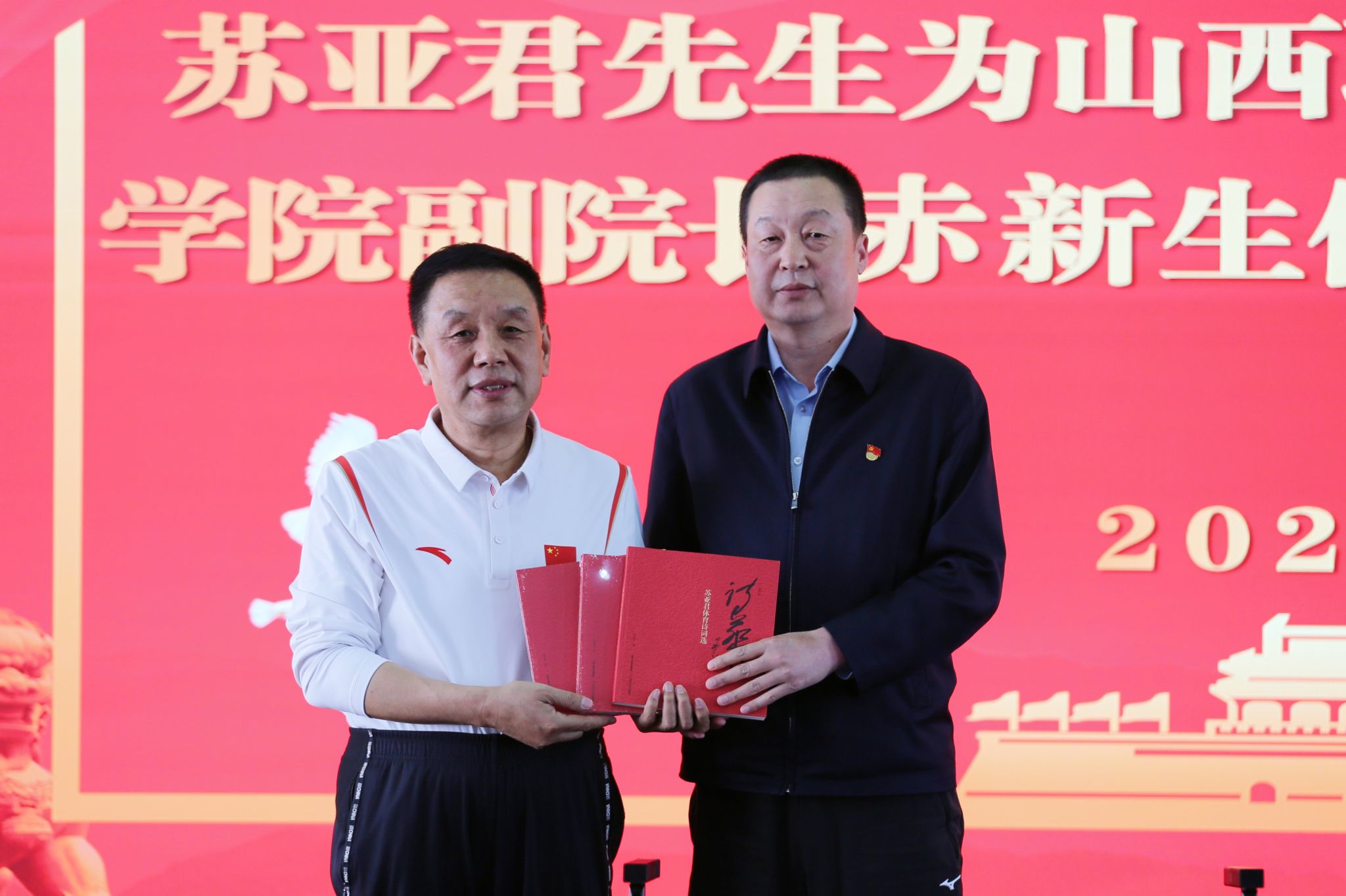 受聘仪式结束后,苏亚君向威尼斯官网捐赠个人诗词集《诗华:苏亚君体育诗词选》,党委委员、副院长赤新生代表学院接受图书捐赠。