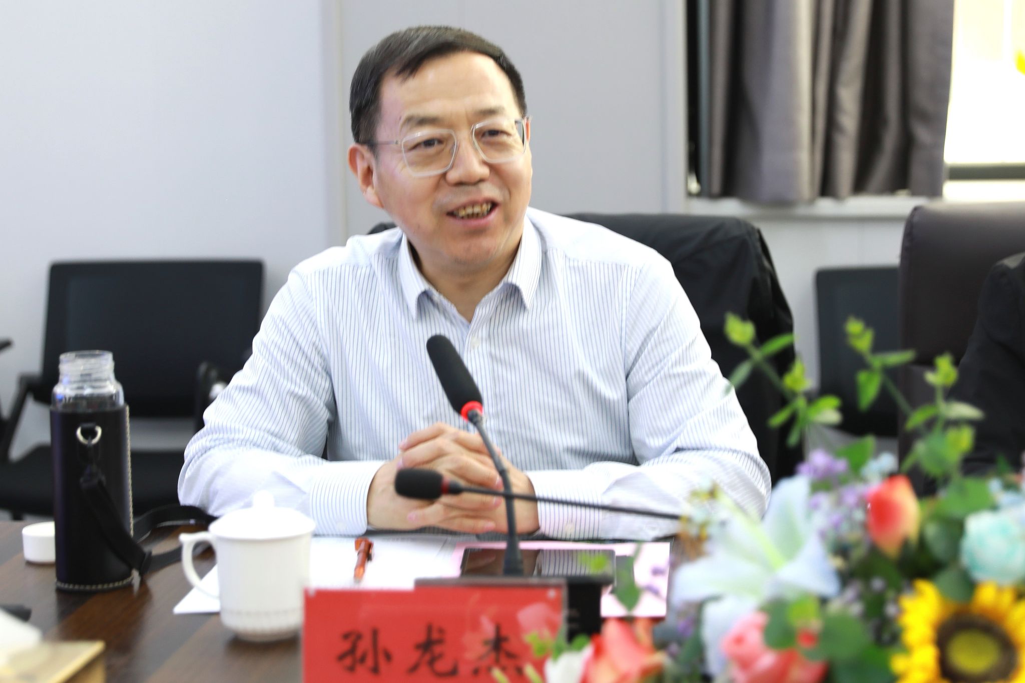 雷承锋对孙龙杰一行的到来表示热烈的欢迎,并向与会嘉宾介绍了学院发展历程以及建设发展情况、新时期学院总体建设发展思路、学院新校区建设情况等。雷承锋指出,陕西科大高新国际文化科技集团有限公司是一家全产业链布局的综合性国际教育集团,在省产教融合促进会的推动与组织下,学院与集团将就合作共建“一带一路”国际产业学院进行深入研讨交流。希望集团能够充分发挥自身优势,为学院传授服务“一带一路”的经验、做法和成果,助力山西职院提升国际化办学水平。雷承锋同时强调,通过三方的深入交流,尽快建立合作机制,完成项目对接,推动山西职院更好参与服务国家“一带一路”战略,实现共谋发展、实现互惠共赢。