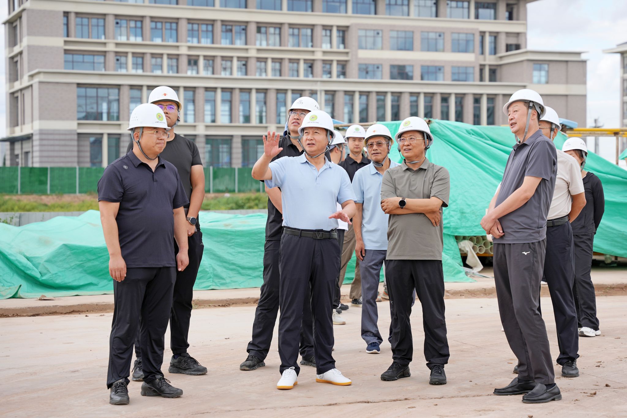 8月10日下午,山西省委教育工委委员、省教育厅党组成员、副厅长李金碧莅临威尼斯官网新校区一期工程建设项目施工现场进行调研指导工作,威尼斯官网党委书记雷承锋、党委委员、纪委书记牛惠斌、党委委员、副院长赤新生、新校区建设办公室全体成员、学院建工系教师及各参建单位陪同调研。