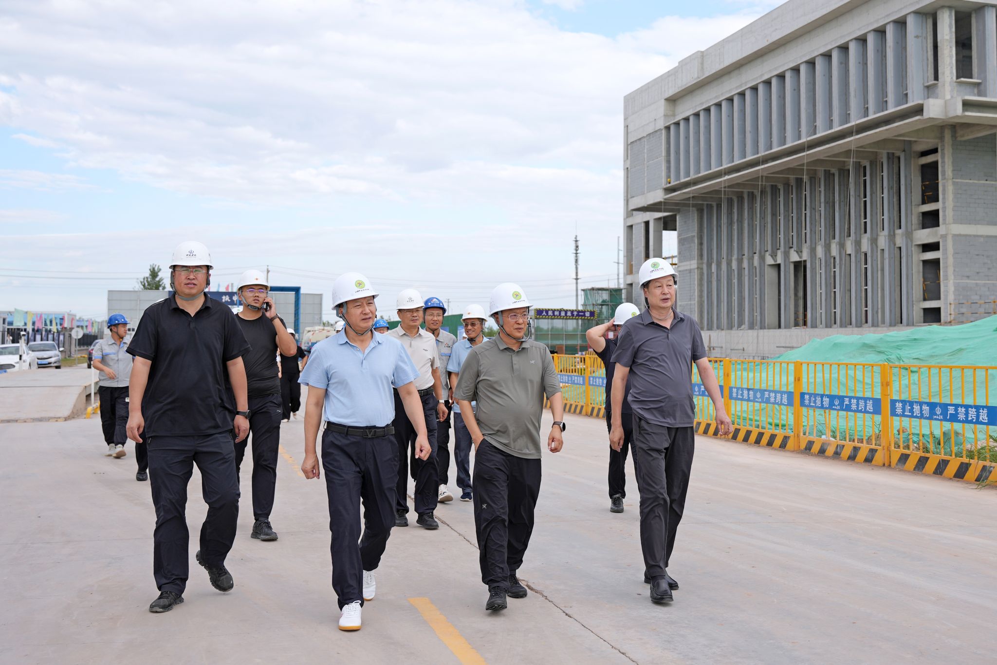 调研会后,李金碧深入新校区施工现场,详细了解项目施工的整体推进情况,同时考察已建成的产教融合实训楼并提出具体要求和指导意见。