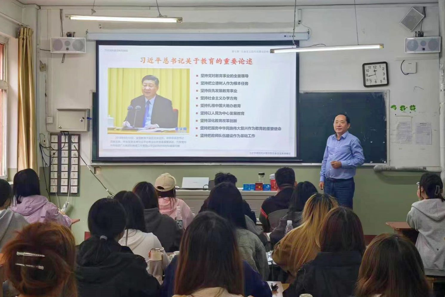 党委委员、副院长赤新生讲授了《马克思主义中国化时代化的新飞跃》,为大学生价值观建设提供正向指引,深刻阐述了用马克思主义的立场、观点、方法来观察世界、引领时代,是当代大学生应有的智慧和品格。