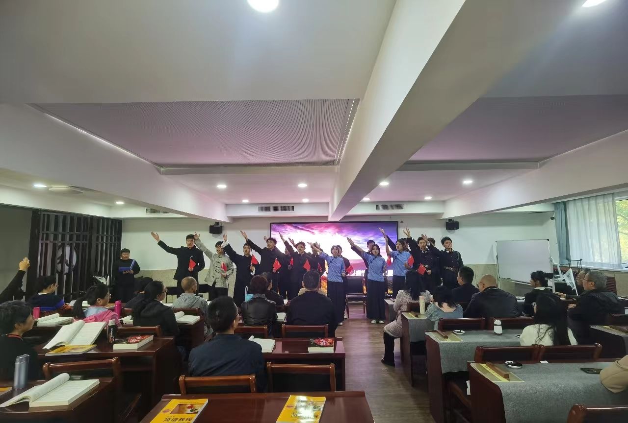 我系入党积极分子代表给军休老干部带来了精心排练的课本剧《破晓》,通过激情演出将大家带入到当时的年代,展现了青年一代为了胜利不畏牺牲的热血担当。