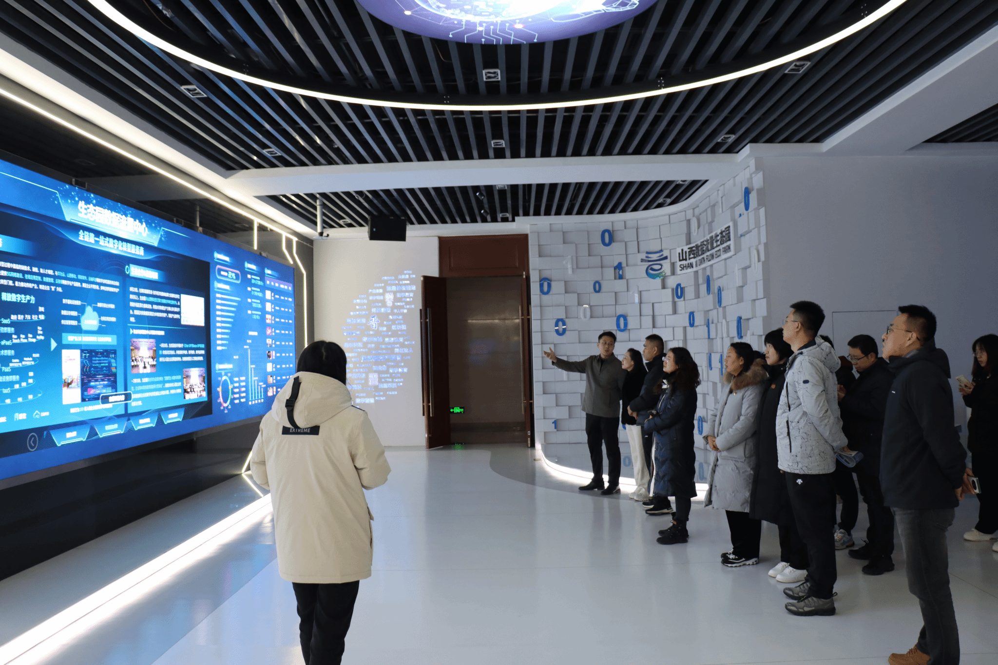 进入山西数据流量生态园,数字化展厅吸引了老师们的眼球,通过工作人员的详细讲解和大屏幕数字化展示,了解了山西数据流量生态园推动数字经济高质量发展的成绩和“数据要素+流量变现+场景应用”的数据生态闭环体系,为后续交流合作奠定了基础。