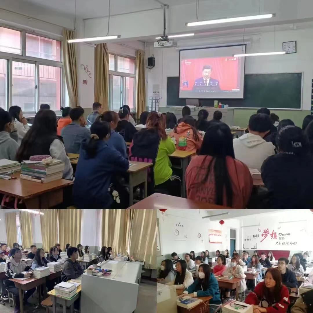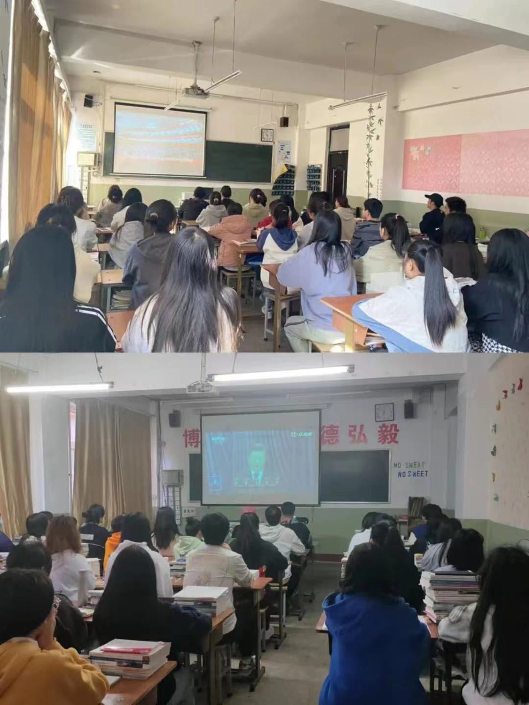 同学们在报告厅,教室内集中收看党的二十大开幕会盛况,认真聆听、学习、热议习近平总书记的报告。党的二十大开幕会上习近平总书记的报告引起了大家的强烈共鸣,教室里不时响起同学们的掌声。习近平总书记强调:“我们处在前所未有的变革时代,干着前无古人的伟大事业”。新的伟大征程上,无论风云如何变幻,无论挑战如何严峻,我们都要弘扬伟大建党精神,坚守初心使命。