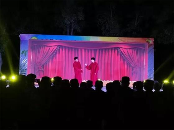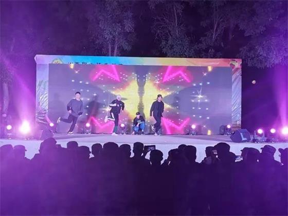 晚会开始前,大二学长和大一的学弟学妹进行了一场精彩的电竞比赛(王者荣耀),以独特的开场带动了同学们的气氛。晚上7点30分,老师们入场,主持人上台,正式拉开了晚会的序幕,青春活力的开场舞嗨翻操场,之后参与表演的人员更是拼尽了全力,开场舞、教官独唱、老师的独唱,相声《满腹经纶》、小品《我要成名》一个个节目从观众们的不间断的欢呼声中可见精彩。