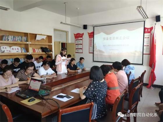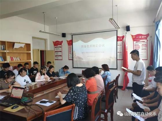 2019年6月14日,电气工程与自动化系学生党支部在办公楼四楼会议室召开学生党支部预备党员转正会议。专职组织员张钰同志列席,会议由学生党支部书记康舒主持。