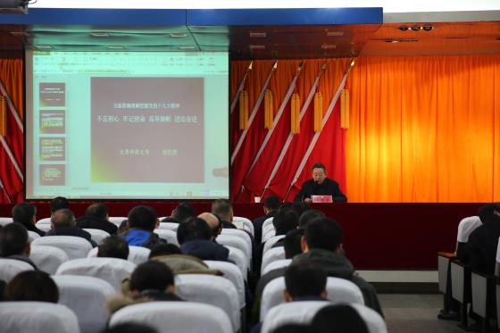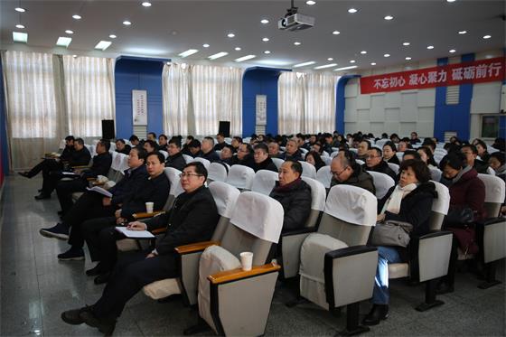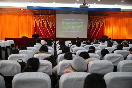 为深入学习宣传贯彻党的十九大精神,根据省高校工委、省教育厅《关于做好学习贯彻党的十九大精神宣讲工作的通知》(晋高工宣﹝2017﹞12号)文件要求,1月9日下午,院党委理论学习中心组特邀太原科技大学马克思主义学院院长、硕士生导师赵民胜教授为学院师生作了题为“不忘初心、牢记使命,夺取新时代中国特色社会主义伟大胜利”的专题学习辅导报告。学院党政领导、全体中层干部,党办、组织部、宣传部、纪检监察室、工会、学工部、团委全体工作人员和思政部全体专兼职教师,专兼职辅导员、学生会主席和副主席一起聆听了报告。报告由院党委副书记李高斗主持。